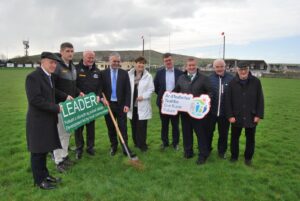 Minister Dara Calleary turning the sod on the project recently, accompanied by Minister Michael Healy Rae, TD, Paul Geaney – Dingle & Kerry Captain, Sean O’Suilleahan – Cathaoirleach, Minister Norma Foley, Jim Garvey, Cllr Breandan Mac Gearilt, Cllr Charlie Farrelly, Derry Murphy